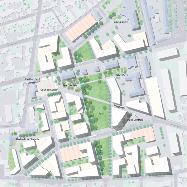 Aménagement du site des anciennes casernes militaires Beaumont Chauveau en un programme de logements, bureaux et équipements publics.